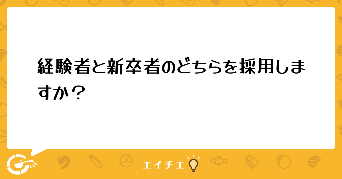 意見を聞かせて下さい❗️80床の病院で勤務しています。厨房は委託で、管理栄養士2名でしています。1名が退職になり、募集をしたら2名来ました。1人は30代後半で最近管理栄養士をとった人で、給食管理の経験はある人、もう1人は、今年卒業して管理栄養士を合格したばかりの人。みなさんだったらどちらを採用しますか?面接は終わっていますが、経験者の人は、まだ子供が 6か月と小さく、休んだりがあるのではないか心配です。まとまりのない文章ですいません(´・_・`)