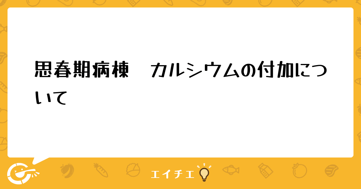 成人の患者さんが多いが、思春期病棟があるところでは、カルシウムの付加など、どのような工夫をされているでしょうか??