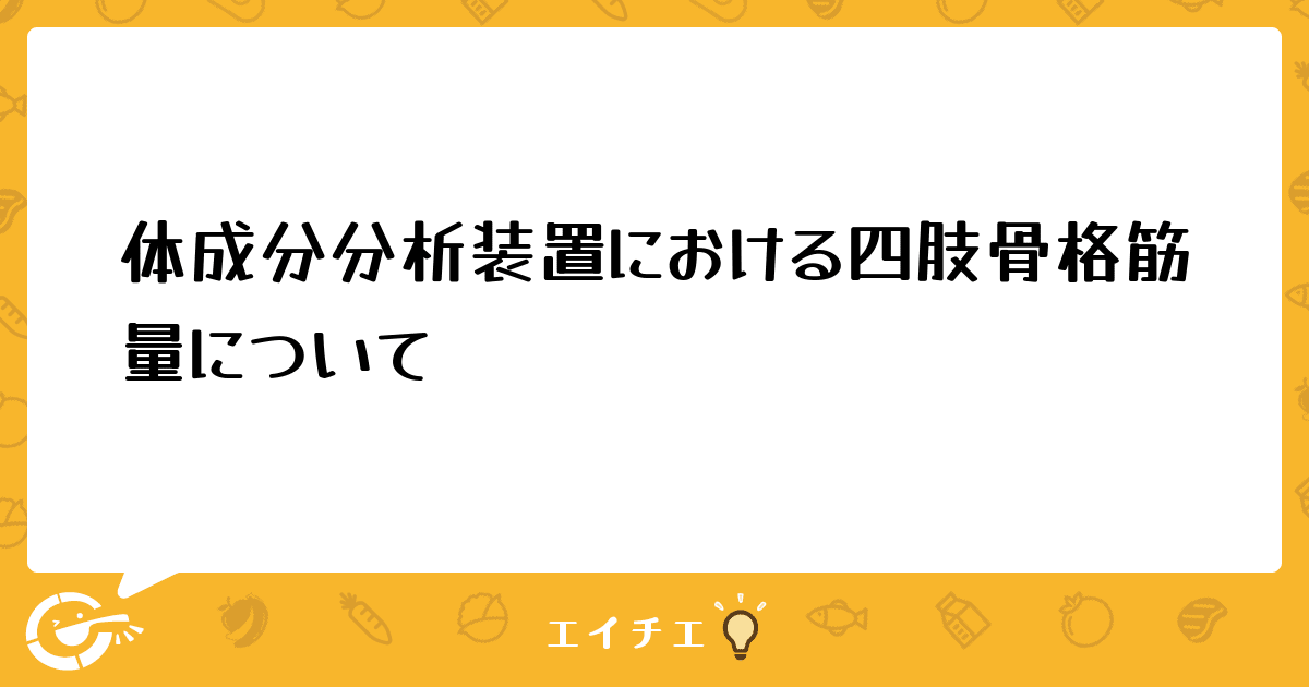 そしてタイトルの通り、体成分分析装置(i○body等)で測定した場合のSkeletal muscle index(以下SMI)についての質問です。