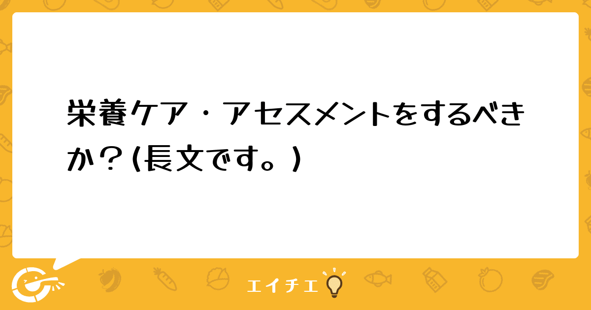 管理栄養士に聞いた所、うちでは、やっているけど、管理栄養士がアセスメントをやって加算になるのだから、栄養士がやっても加算にはならないよ。その施設で必要なのかなあ?と言われました。
