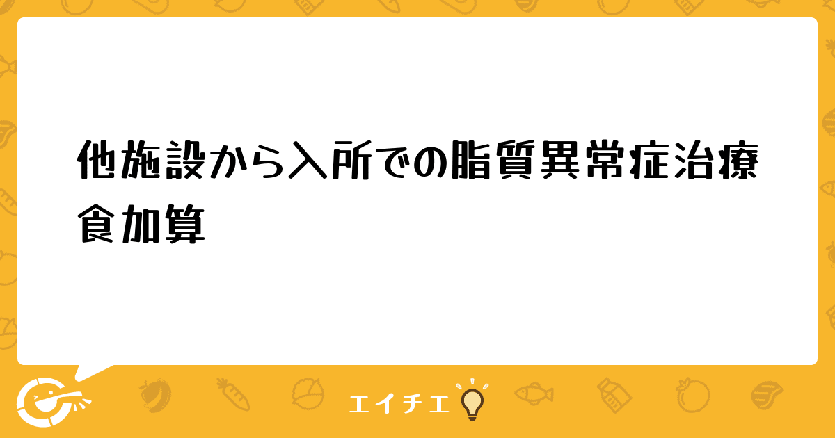 うちの嘱託医が脂質異常症で、食事箋を出しましたが、こういう場合は治療食加算はとれるんでしょうか?