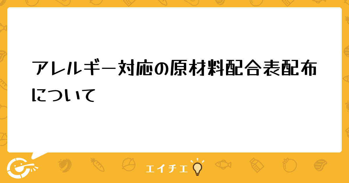 そこで疑問に思ったのですが、アレルギーの対応をする時、自分で除去したり、保護者が代わりのものを作って持参する献立を、保護者が確認するために、献立だけではなく原材料の配合表が見たい場合があると思います。