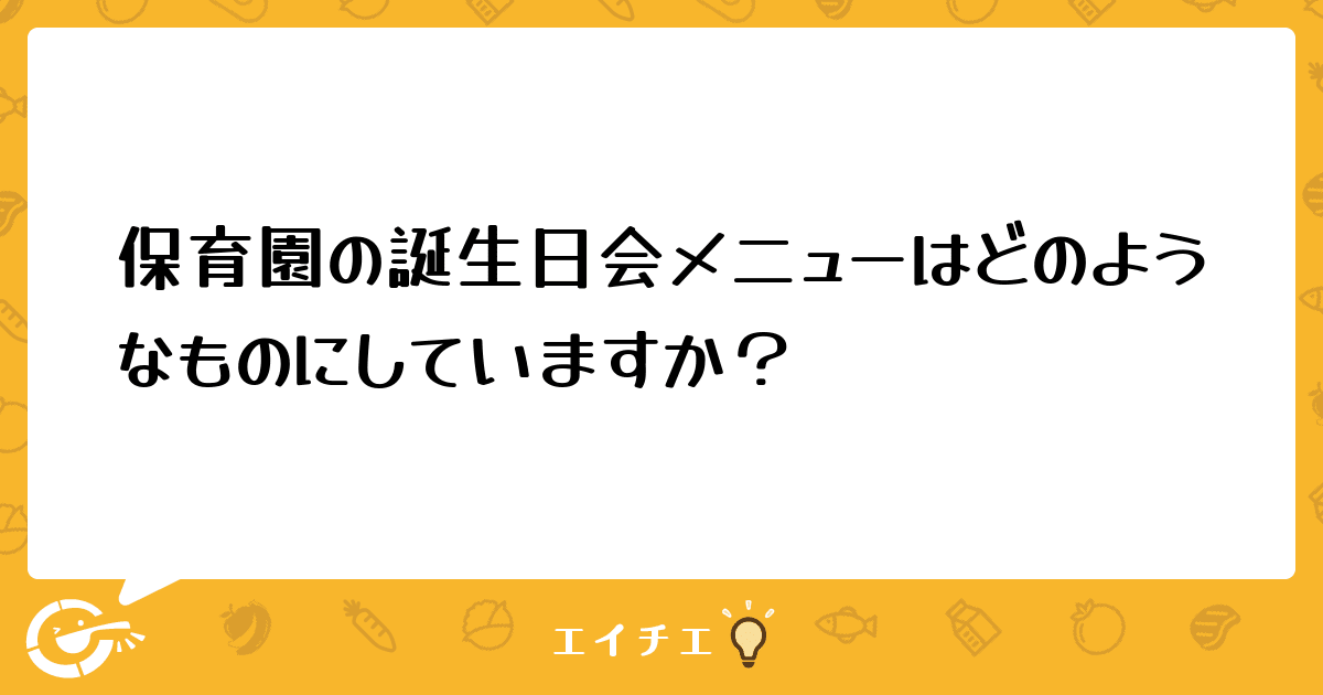 先日職場の会議で保育士から、「誕生日会メニューが普段の給食とあまり変わらない。」という意見が出ました。月に1回誕生日会があり、子どもが好きな唐揚げやカツなどの揚げものとサラダ、スープ、混ぜご飯、ゼリーという内容にだいたいしていたのですが、保育士からすると普段の給食と違うのはゼリーが付いているところくらいで、あとはいつもとあまり変わらないメニューである、ということです。