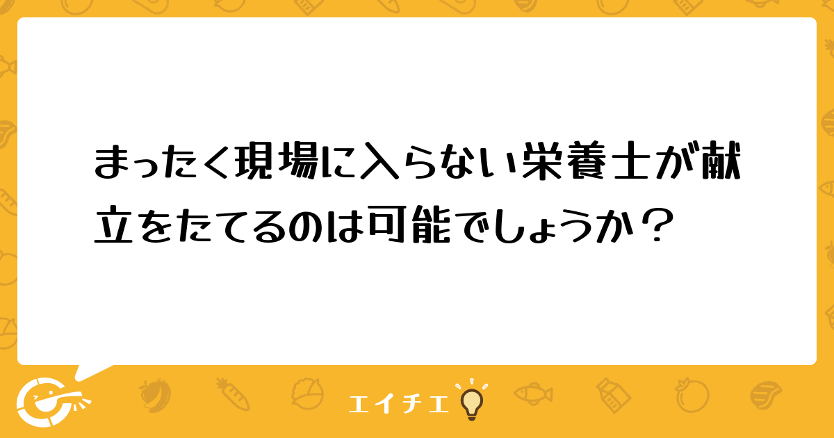 皆さんにお聞きしたいのですが、全く現場に入らない(現場を知らない)管理栄養士が献立、栄養ケアマネジメント両方を行うのは可能だと思いますか?