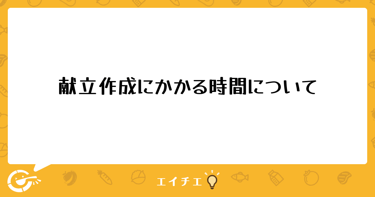 自覚している問題点として、献立作成に取りかかるのが遅いこと(2週間前には発注しなければならないのに、取りかかるのが3週間前の水曜くらい)です。
