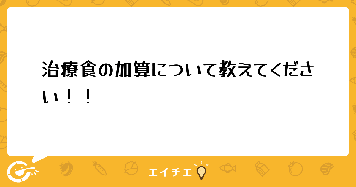 治療食の加算について、何でもいいので教えてください!!