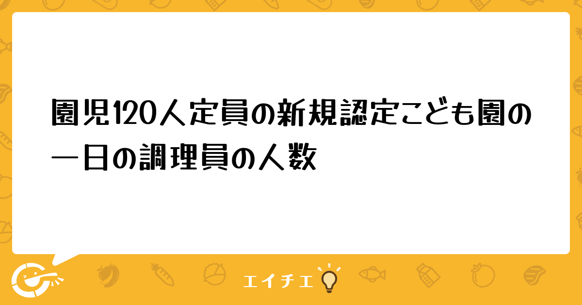 こども園の厨房内の設備や献立によっても人数は変わるかと思いますが、