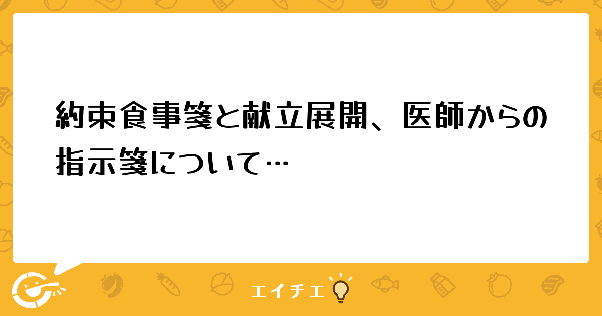 今、特養で栄養士として働いているのですが、約束食事箋と献立展開について悩んでいます。