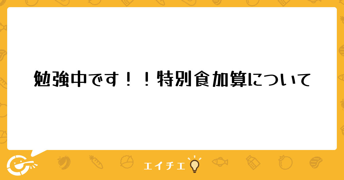 特別食加算について、疑問なことがてできましたので質問させていただきました。