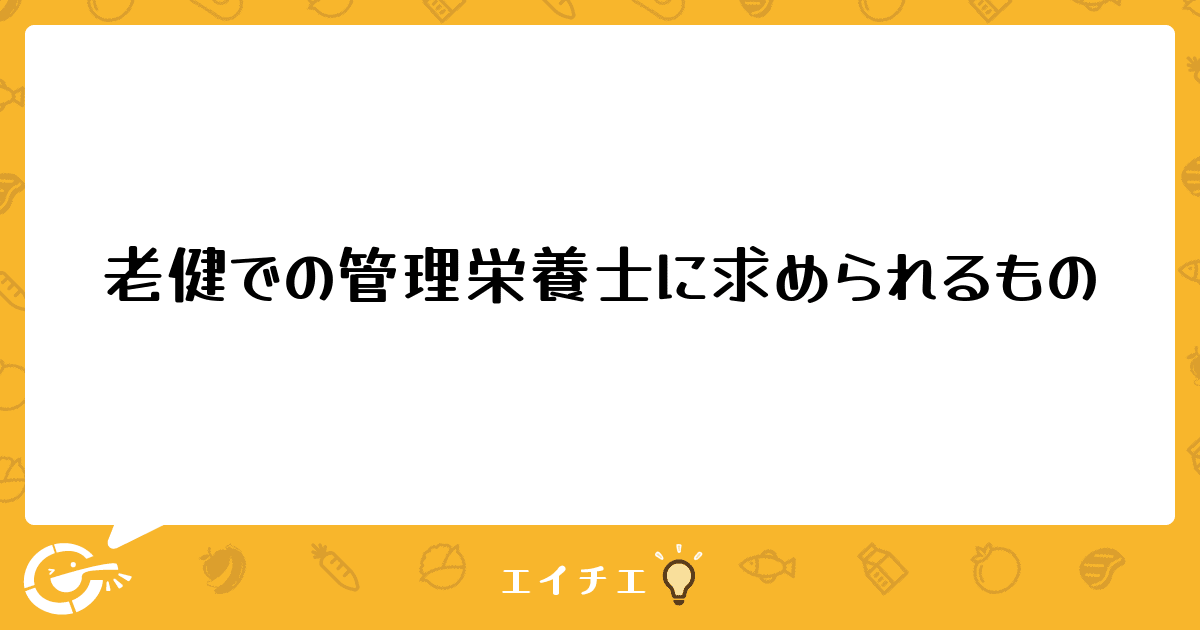 いきなりですが、老健で働く管理栄養士として最低限必要なもの、知識はなんですか?