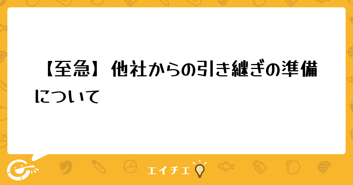 業務の引き継ぎで聞いておかなければならない事は山ほどあると思うのですが、下記以外に「これは必要!」と言うものはありますか?