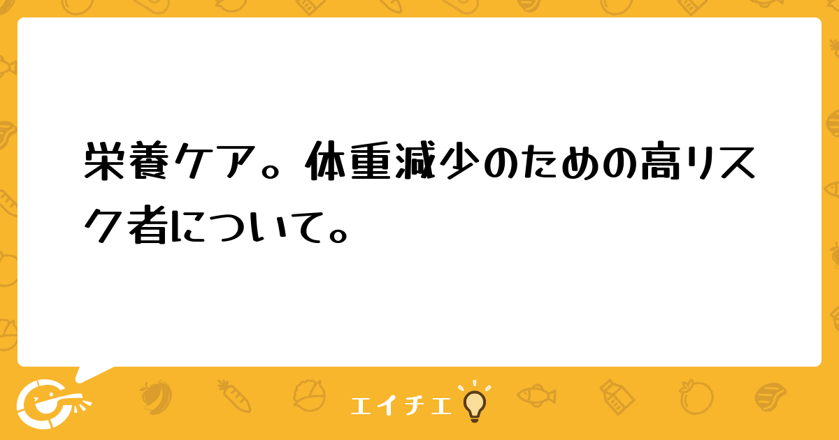 数字から言うと高リスクになるので、モニタリング2週間で様子を見ようと思うのですが、次回体重測定を行い、また39kg台であった場合、もしくは数か月体重測定を含む様子を伺っていた場合、体重に変化なく、BMIも18.5以上、喫食率にも問題なく、褥瘡もできていない。