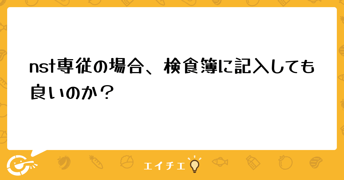 nst専従の場合、100%従事しなければならないということですが、検食も行なってはいけないのでしょうか?