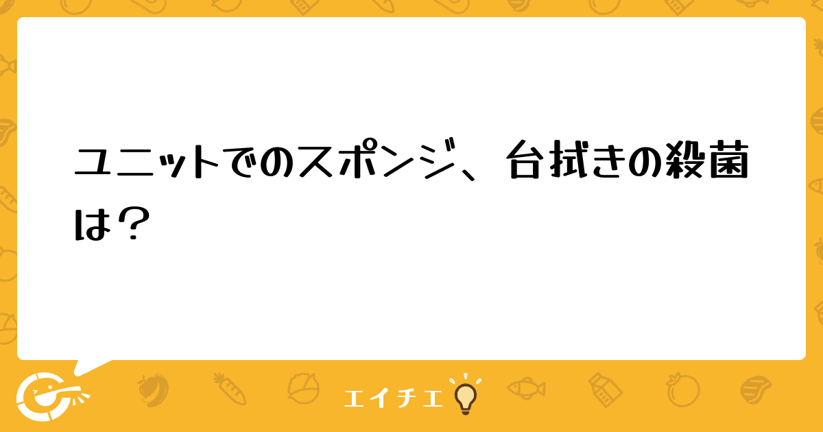 ユニットで働かれている皆様は、ユニットのスポンジや台拭きはどのタイミングでどのように殺菌してもらっていますか?やはり次亜漬けだと思うのですが、ユニットの職員さんから毎食ふきん1枚、スポンジ1個をそれぞれつけ置きするのは、現実的には難しいと言われました。スポンジとふきん、一緒に漬けたら?と言われましたが、次亜の濃度が違い、スポンジはあまり長く漬けると変色があるし、衛生的にどうなの?と思ってしまうのですが…。当初は、朝・昼・夕食後に毎回次亜漬けしてもらおうと思っていましたが、この際各ユニット3個ずつくらい買ってもらって夕食後にまとめて殺菌してもらう?など考えていますが、いかんせんお金のかかることなのでなかなか踏み切れません…。