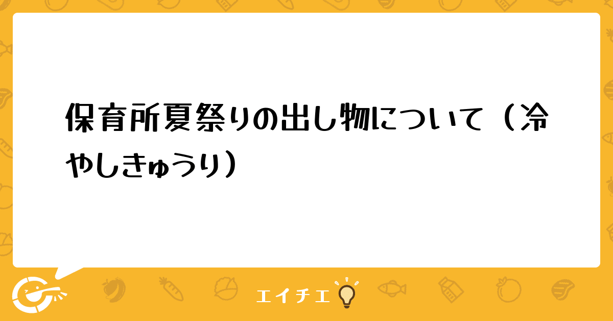 夏祭りで冷やしきゅうりを出す事になったのですが、12時前には漬けて、17時に提供開始なのですが、冷やしきゅうりの漬けタレは早めに朝、8時には火にかけて作って冷却。その間に午前中に保育と職員会議があるので昼食を作ったりしなければいけないので、11時位にきゅうりを熱湯でボイルし、流水で冷却。の予定ですが、きゅうりのボイル時間がどの位すればいいのかわかりません。ちなみに次亜塩素酸は保育所では使わないです。ネットで調べても全然載ってなくて、自分なりに家で試作して1分半位で実験していますが、本当にこれでいいのかわからない上に、衛生面で心配です(去年、花火大会の食中毒事故の件があったので)みなさんの力を貸して下さい。よろしくお願いします