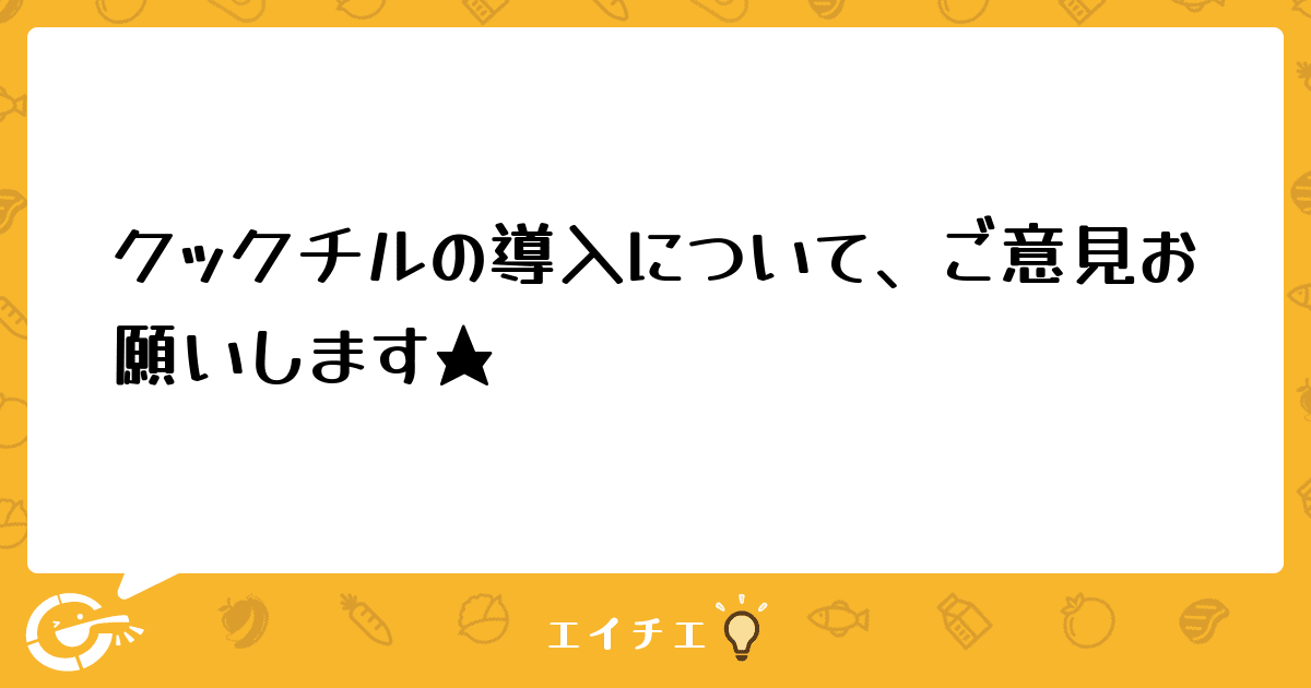 クックチルを利用している、していた、または詳しい方…教えてください!