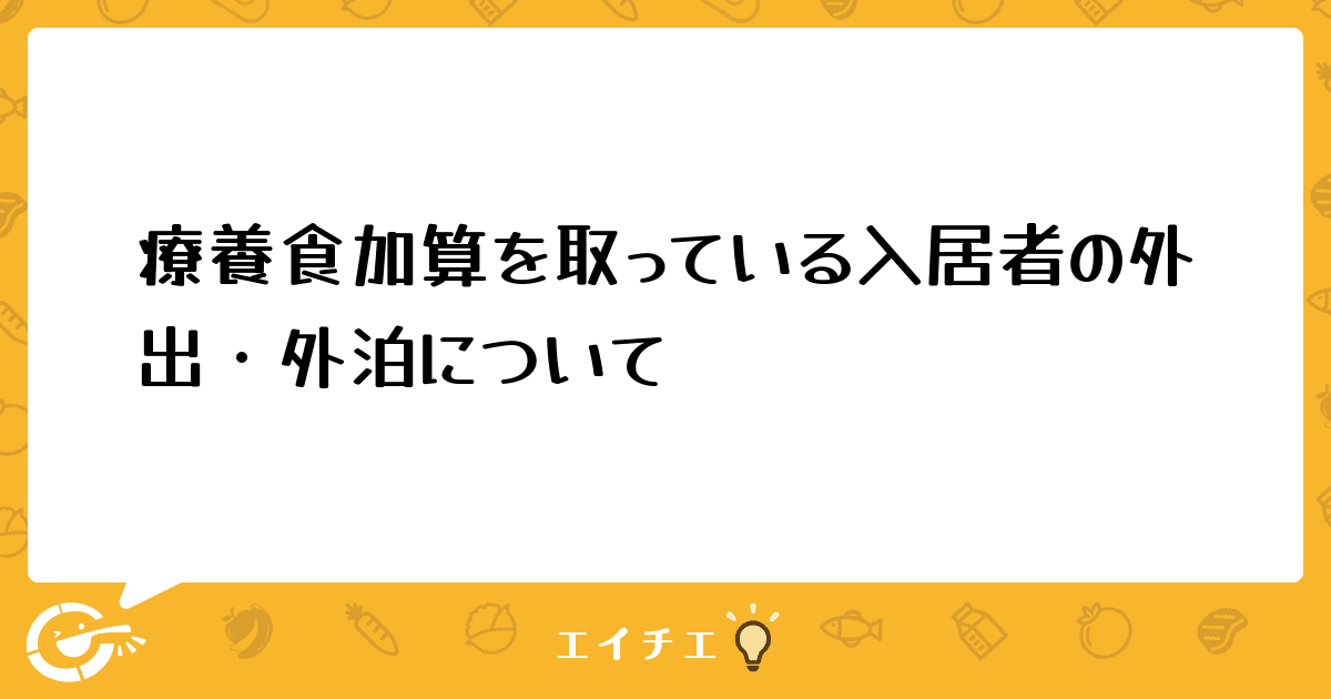 療養食加算を取っている入居者の外出・外泊について、お聞きします。