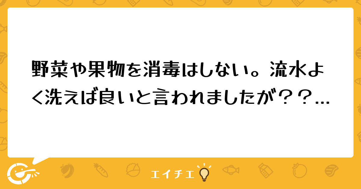 私としてはジアノックという野菜や果物消毒用の物を規定通り使っており、もちろんそのあと流水で流しており、問題ないと思っていましたが、もう古い考えなのでしょうか?