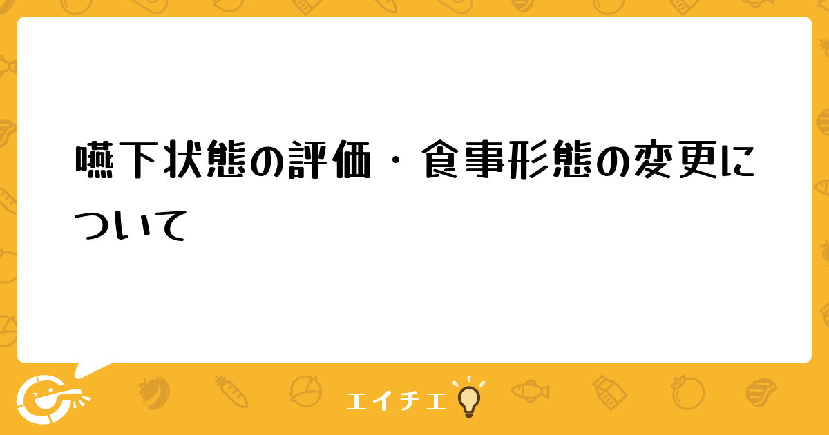 そんな中、嚥下状態の低下を評価して食事変更をかけるタイミングがよくつかめない状況にいます。