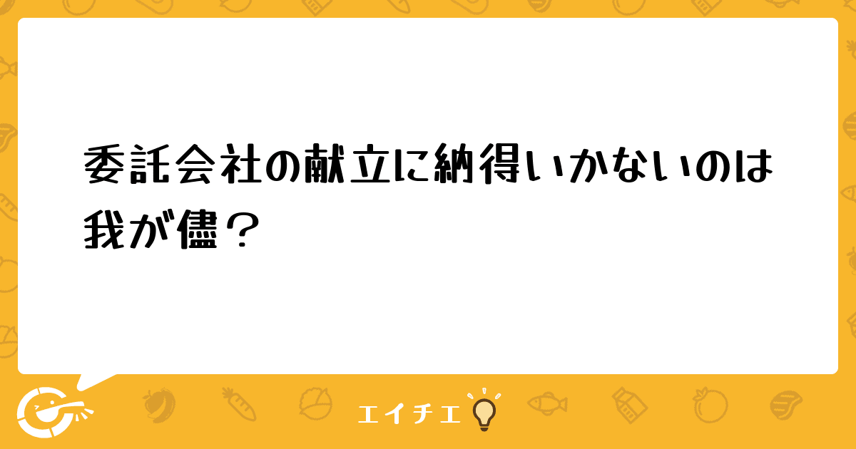 しかし、赤字がでても美味しいなら許される 以前いた 直営と今の委託会社じゃ金銭や人員等に違い があり同じように求めるのは酷ですし、献立 作成経験のない私があれこれ言うのも良くな いかもしれません。
