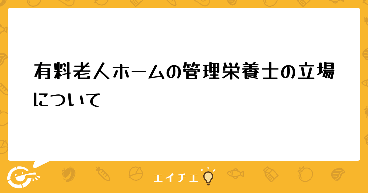 私の所属する会社は主に関東を中心に介護付き有料老人ホームを展開する会社ですが、管理栄養士の位置付けがあいまいで他の有料老人ホームではどうなのか教えていただきたいです。