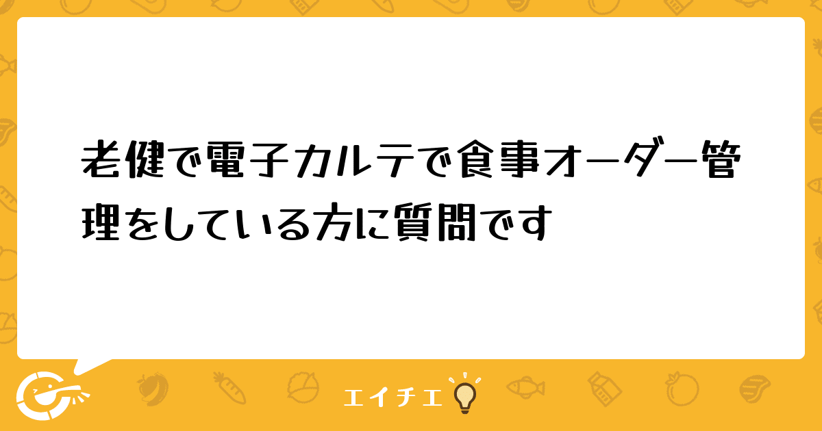 そうなった場合、今の状況だと厨房もしくは栄養士あてに