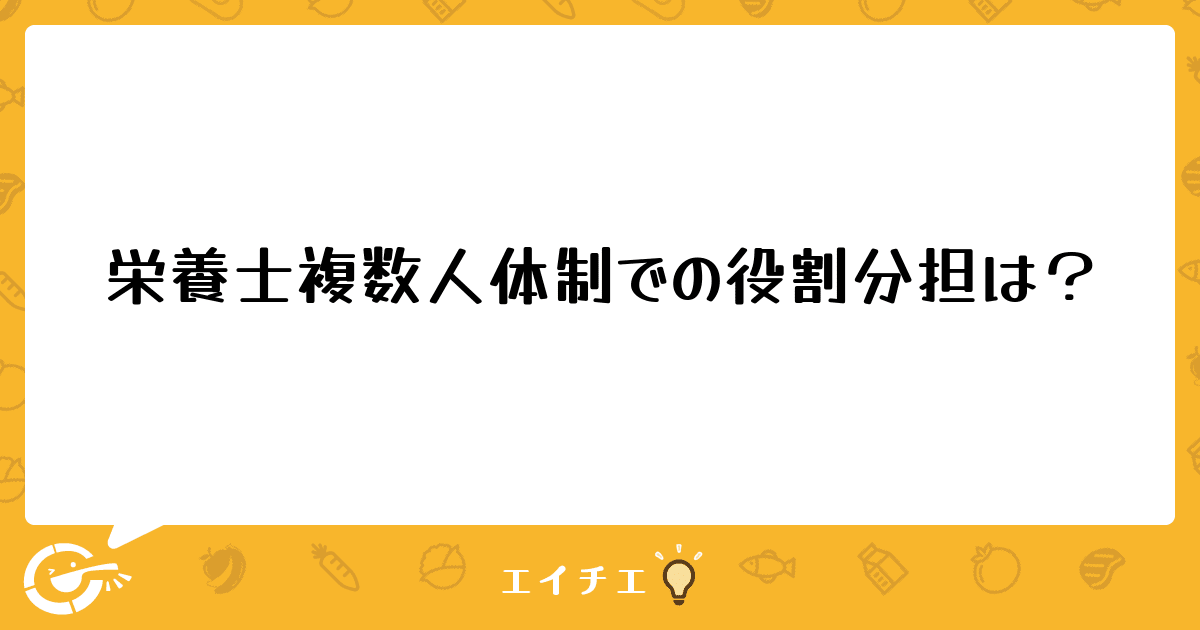 私的には、栄養指導などは複数の管理栄養士でスケジュールを立てて行い、