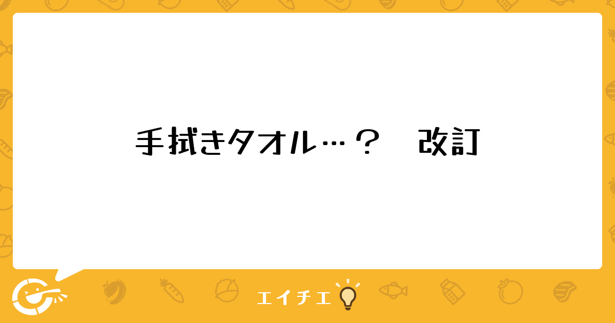 ここで質問したいのですが、手を拭くのに「タオル」はメジャーでしょうか?また、タオルを手拭き用にした場合は次亜で消毒してますか?それとも、煮沸消毒でしょうか?それとも違ったやり方があるのでしょうか?