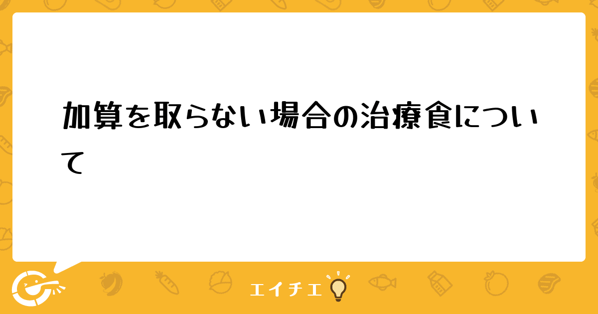 うちの施設では、治療食に対して、対応はするが加算は取らず、入居者様より別料金をいただくことになっています。