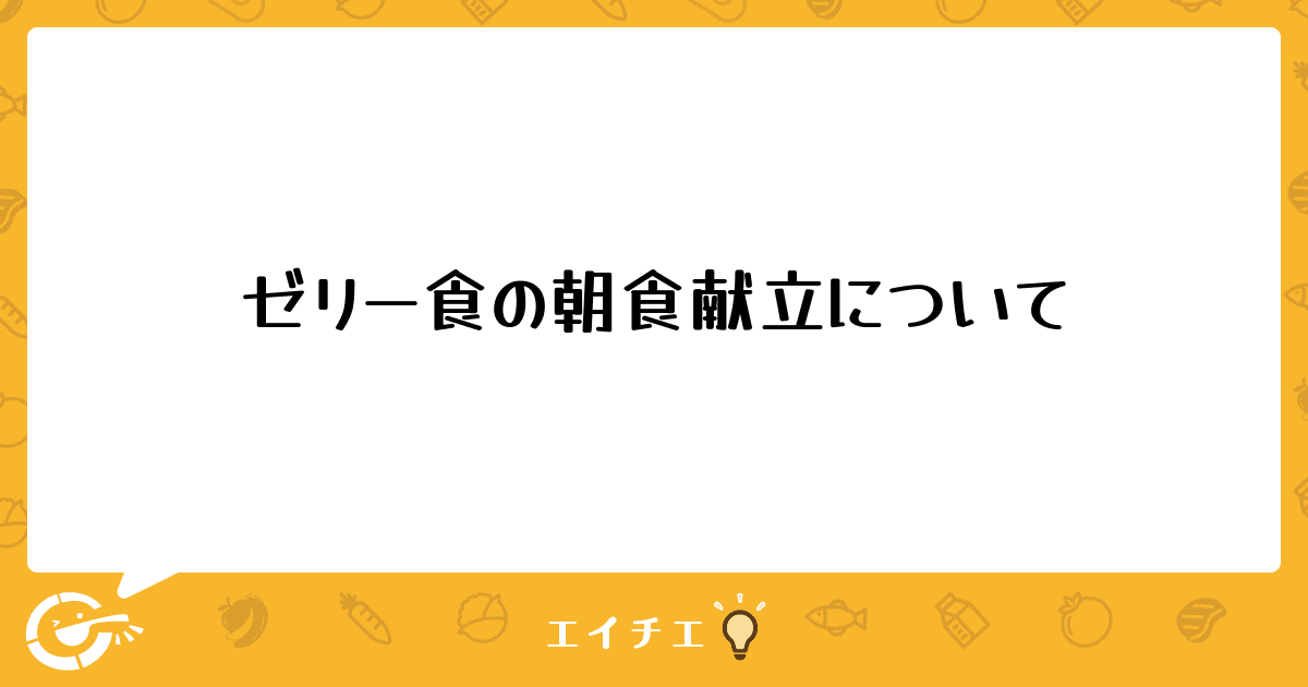 ゼリー食を導入されてる方、いらっしゃいましたら、朝食の献立のアドバイス何か頂けたらと思います。