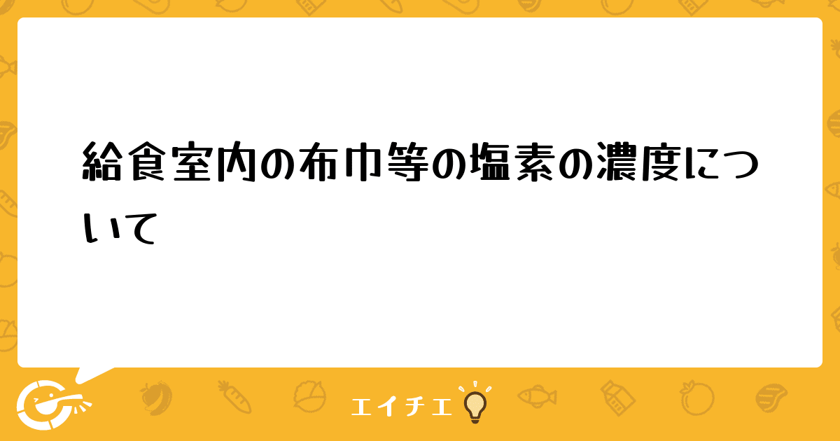 給食室内で塩素の希釈液は、給食室入り口のマット、台拭き(ダスター)、床掃除用で使っています。