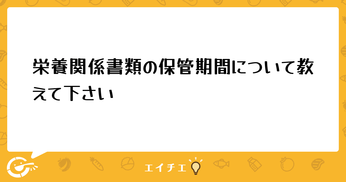 最近は電子カルテのため、紙ベースで保管する場所も限られており廃棄したいのですが、保健所に確認したら、大量調理マニュアル関係は1年間とあるので、その他の書類について教えていただければ幸いです。