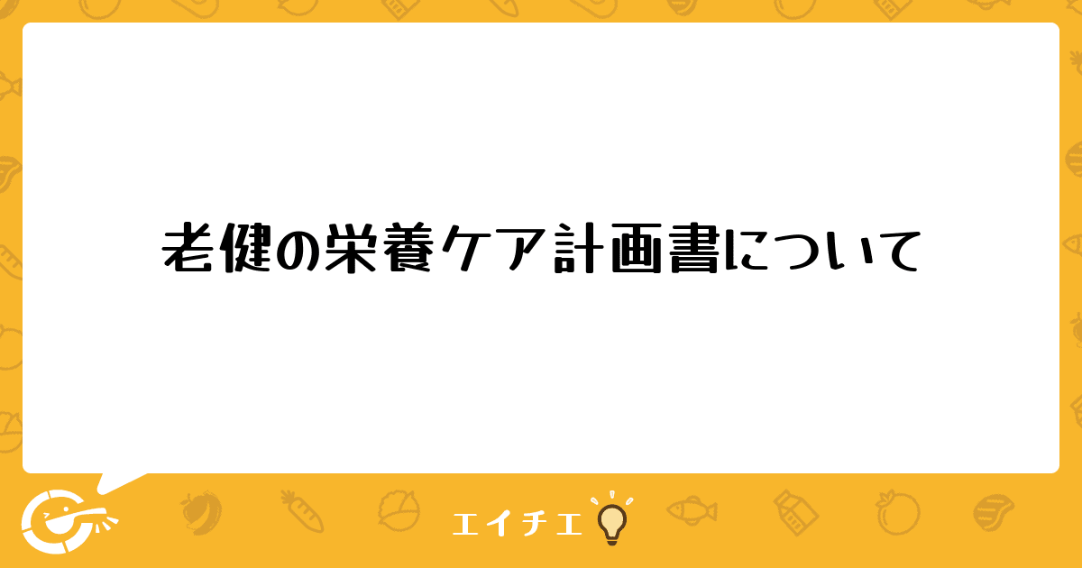 ここで質問を読ませて頂くとケアマネさんと相談してなどよくありましたが、ケアマネさんも4月入社で今までは在宅?なのか老健は初めてなので手探りで進めてるとのことなので、どこまでを栄養ケア計画書にのさて、どこまでを施設ケアプランにのせるかなどまだ決められていません。