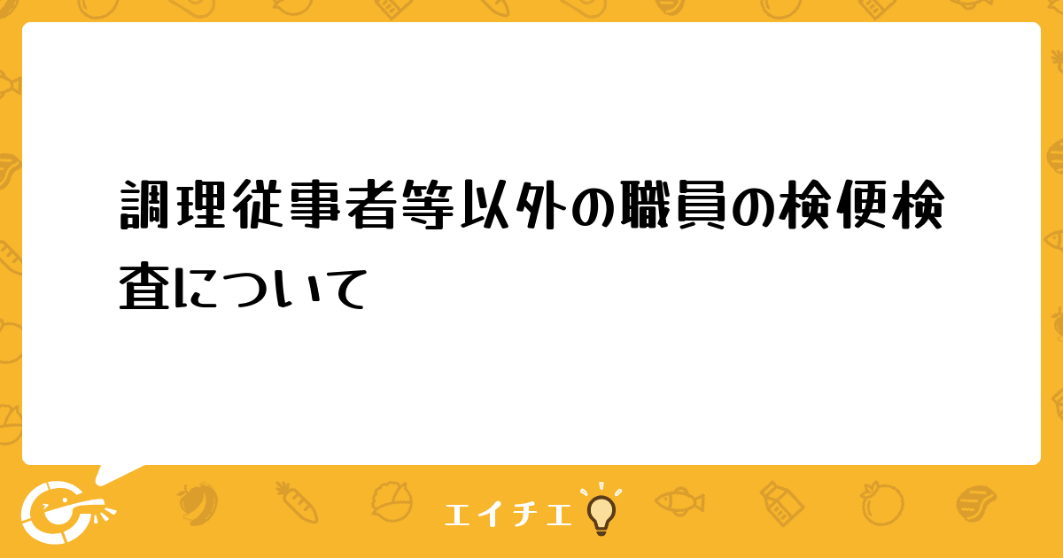 私の施設は直営の特養ですが、厨房職員の検便検査は月1回実施しています。