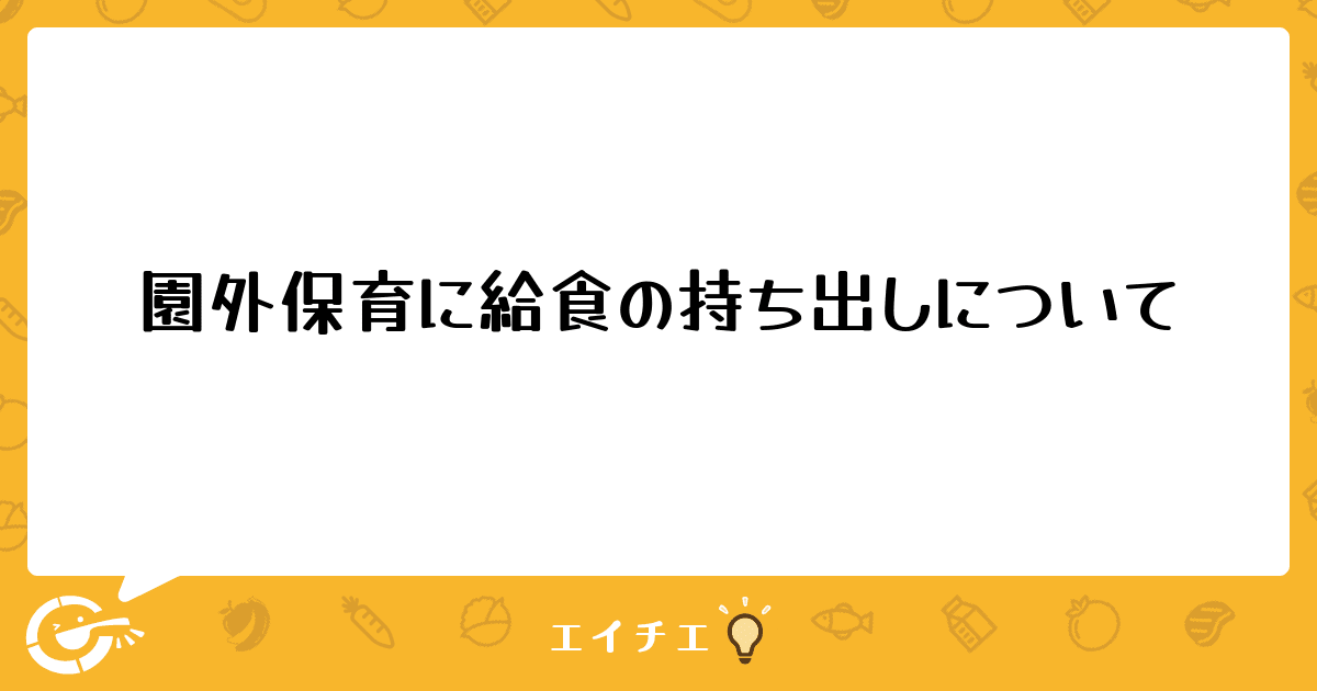 そもそも、給食室で調理したものを園外に持ち出すというのは、どうなのか、、、