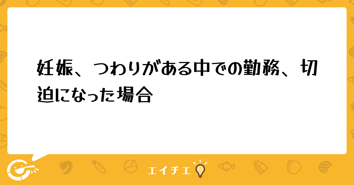 上に2歳の子がいるのである程度は分かってはいましたが、つわりがあり、調理の仕事をするのにすごくしんどい状況です。
