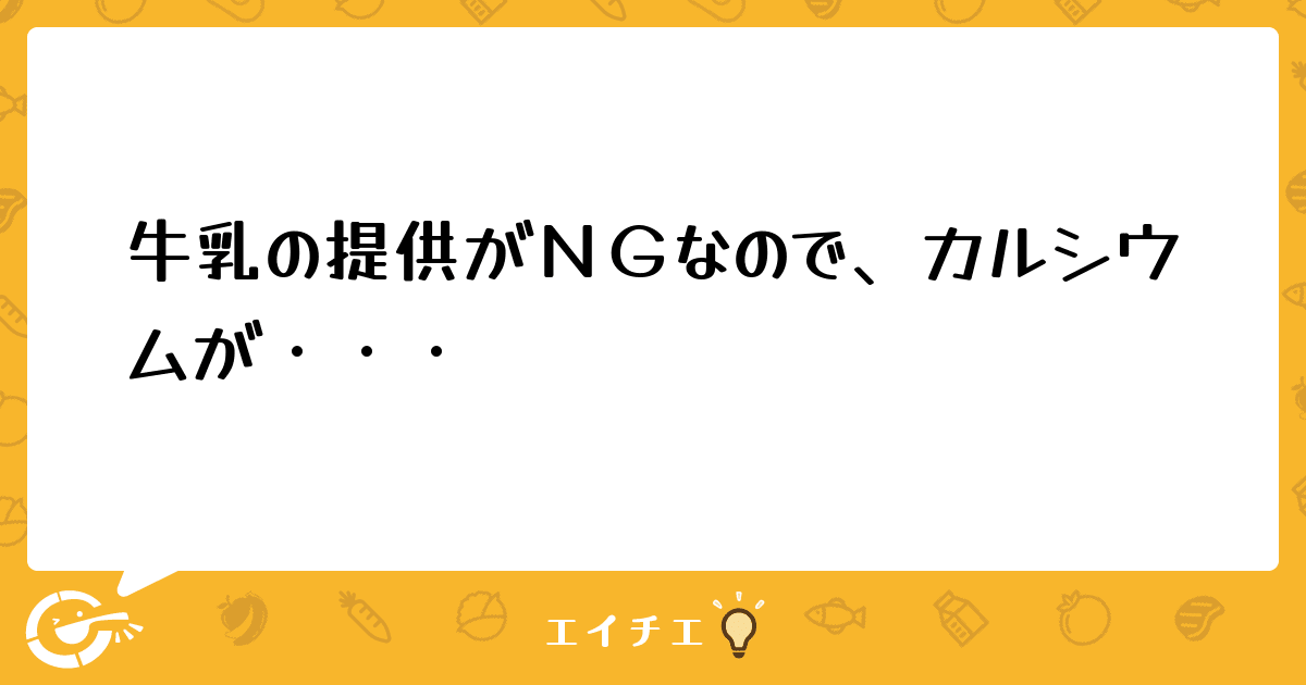 意識改革もしていかなければいけないところなのですが、とりあえず、このカルシウムの不足状態をどのように回避していけば良いでしょうか?牛乳を給食に提供していません!という園の方、いらっしゃいましたらアドバイスよろしくお願い致します。