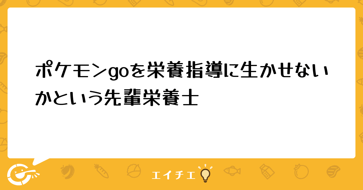 1、ポケモンgoをされてる栄養士さんいますか?栄養指導に組み込めそうな要素ありますか?