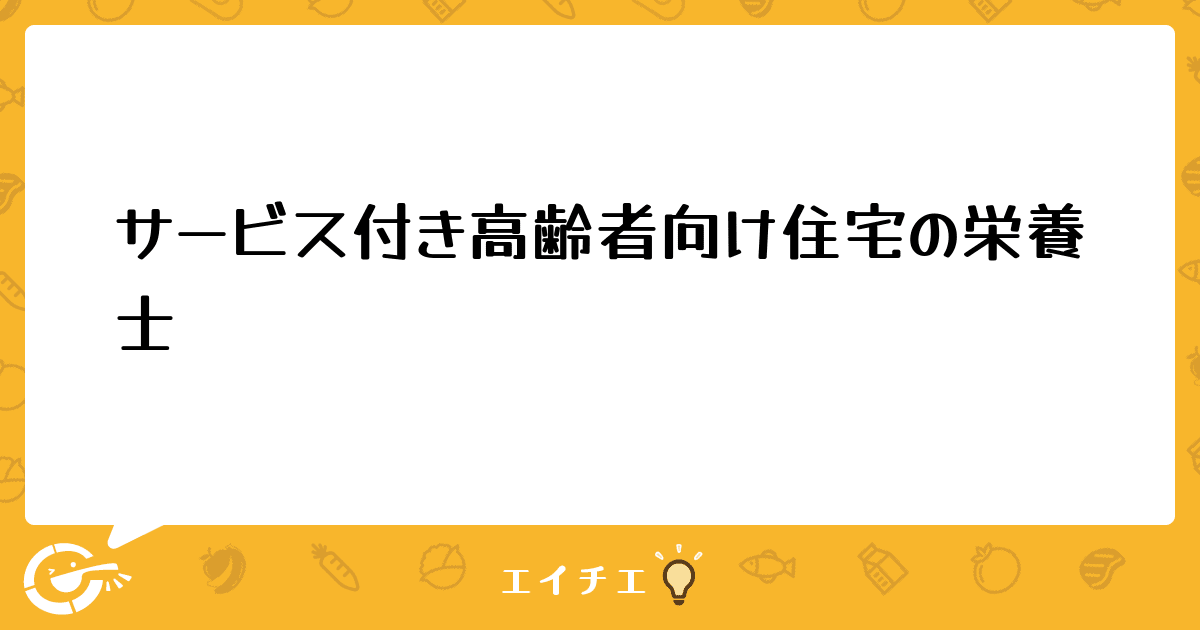 サービス付き高齢者向け住宅(以下、サ高住)で働いている管理栄養士のものです。