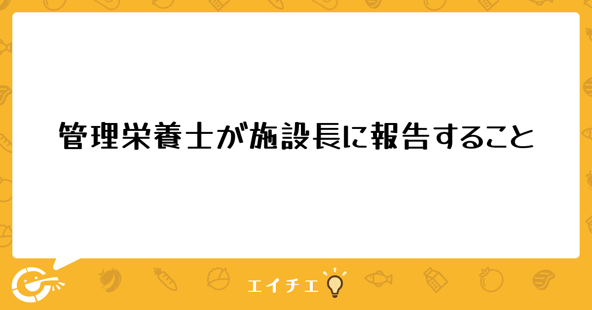 やっと最近少し息がつけるようになってふと疑問が湧いたのですが、管理栄養士が施設長に報告しなければならない、あるいは報告した方が良いことって何かあるでしょうか?
