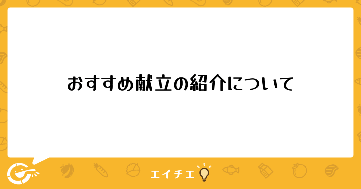 お疲れさまです。今日、施設長に毎日の朝礼でおすすめ献立を一品紹介して下さい!と言われました。季節的な物などをだそうです。季節的な物がない日はどうしよう?という感じです。毎日ってネタ切れになりそうです。皆さんの中に毎日の朝礼で献立説明ってされてますか?ちなみに献立の放送はやってます。