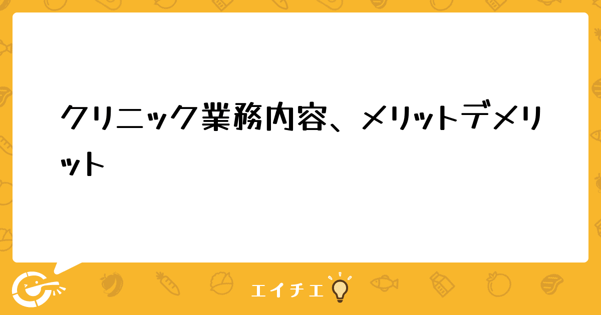クリニックでの勤務においてのメリット、デメリットを調べています。調べた所では‥