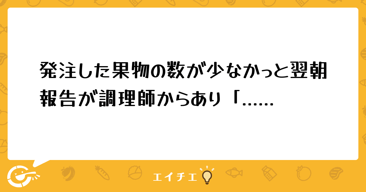 発注したオレンジの数が一個少なくて大変でしたと報告ありました。私(一個ぐらいならなんとか代替え品で可能だべ)と、思うのは変ですか?-----報告した後、以上といい放ち場を去っていきました。それ以来その調理師とは口をきいていません。