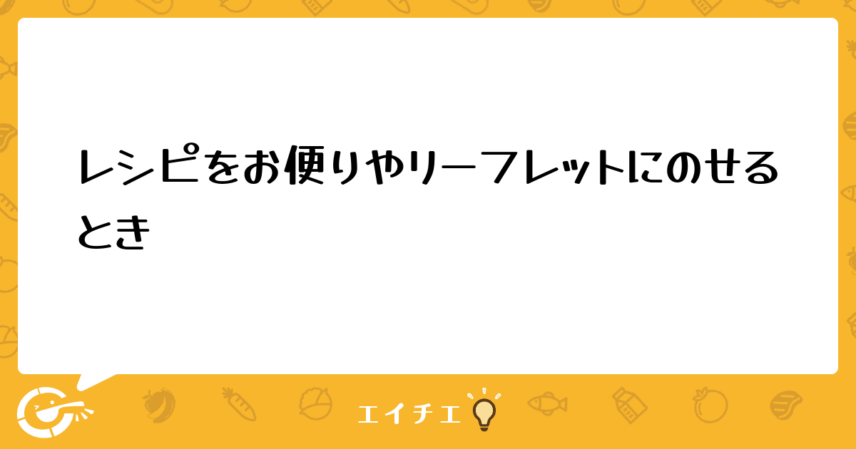 薬剤師や事務の方から、来局される患者さんはレシピがあると嬉しいよとのことで、病態別の資料や、お便りにレシピを載せたいなとは思っているのですが、皆さんはレシピを掲載するときは完全オリジナルですか?