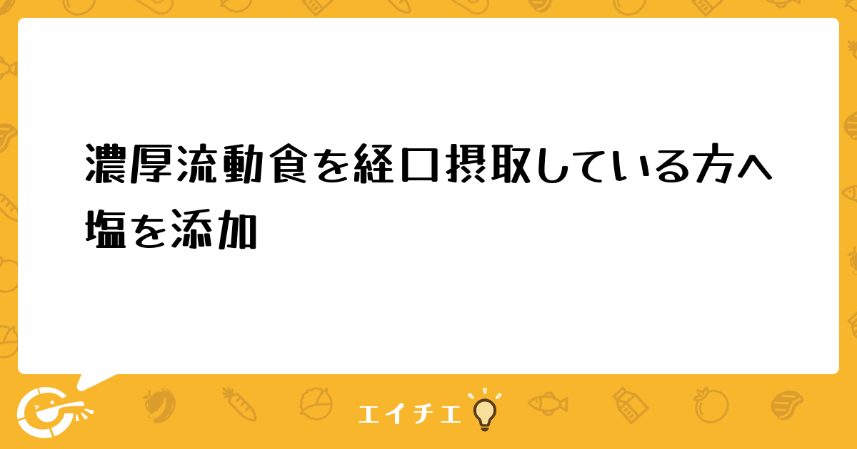 塩を濃厚流動に添加したい理由は(上記の"甘いものが苦手だから~"もありますが)、一日の摂取量(カロリー)が1/2以下だと点滴になってしまう為、てっとり早くカロリーを摂取して頂く為に、濃厚流動を優先して提供しようという話になっているからです。