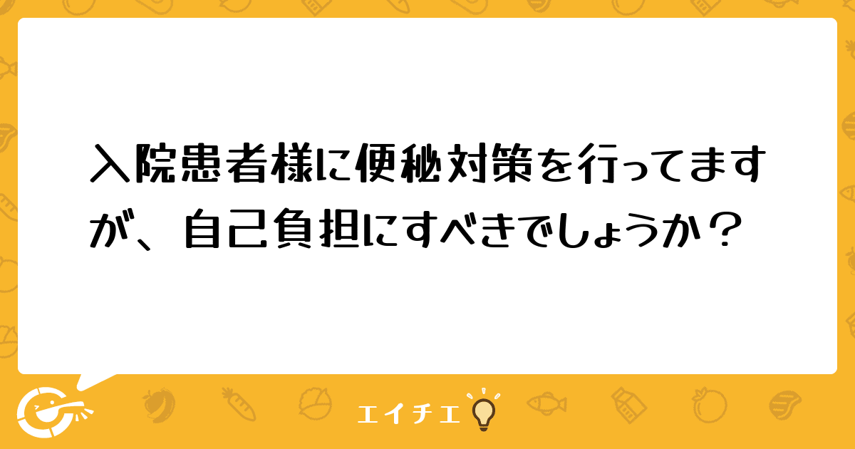 現在は毎月4~5万ほどの経費がかかっています。便秘は特食加算もなく、今すぐ生命維持に直結するとは言い難く、このまま病院の持ち出しで大丈夫なのか疑問です。今のところは事務局からのチェックは入っていません。