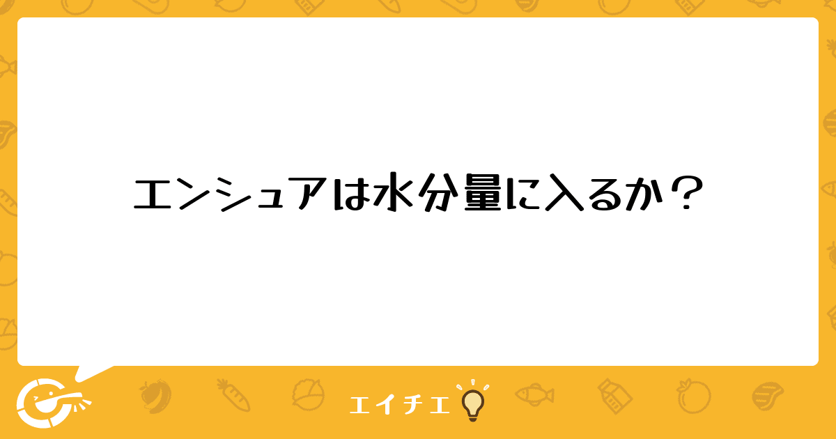皆様の施設ではエンシュア等の栄養補助食品は食事としてカウントしていますか?それとも水分としてカウントしていますか?