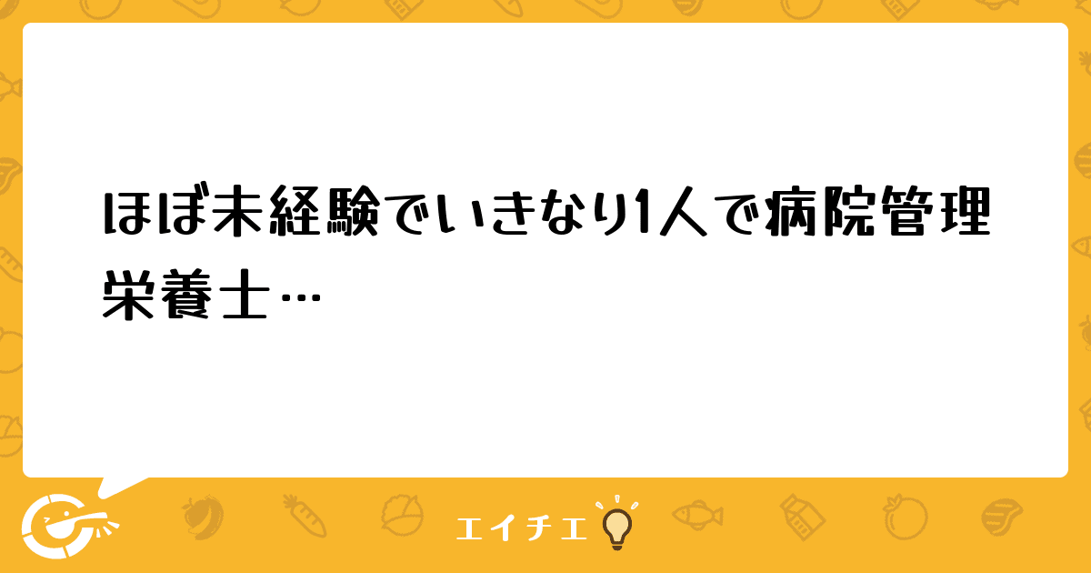 午前は朝から現場に入り厨房業務、午後からは病院業務。栄養指導のノウハウもわからず病棟に上がり、とりあえず栄養指導しなきゃ…という感じでお話ししています。病院の仕事は私1人なので誰からも良いも悪いも言われず、毎日これでいいのか?と不安を抱えながら過ごしています。もともと病院栄養士として働きたい思いがあり、病院で働けることは半分嬉しいのですが、先輩栄養士のいるもとで、きちんと教えて頂きながら病院栄養士として頑張りたいのです。今のままでは毎日なんとなくとりあえずで過ごしており、不安で仕方がありません。