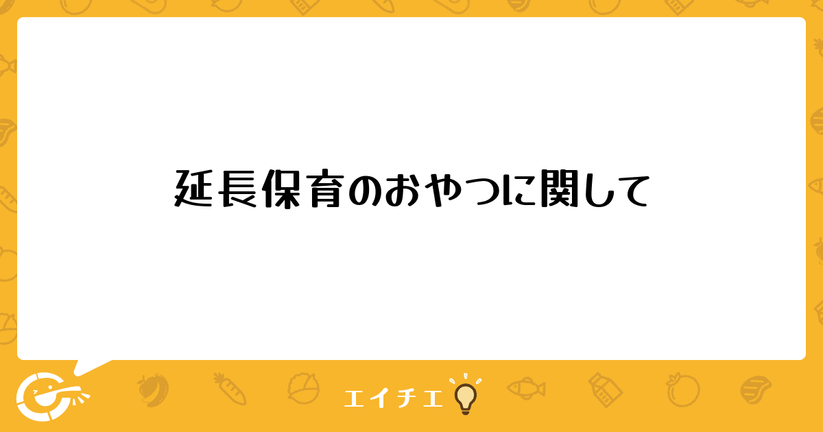 先日、園長から「延長保育(6時以降)のおやつは必要か。経費がかかるから、人数がグッと減る6時半を過ぎてから出している。」と言われました。保育は7時から19時までです。現在、未満児クラスは、10時に飲むヨーグルト50gと市販菓子、11時から11時半にかけて0歳児クラスから順番に給食スタート、15時に牛乳100ccと蒸しパンやおにぎり、18時半過ぎに市販菓子を提供しています。延長保育のおやつをなくしてしまうとお迎えの遅い子は4〜5時間なにも食べないことになるので、できれば延長保育のおやつは提供したいです。そこで、朝のおやつを飲むヨーグルトだけにして、その経費を延長保育のおやつに回し、延長保育のおやつは6時に出すほうがいいのではないかと提案しようと思っているのですが、みなさんはどう思われますか。朝と延長保育のおやつは各園さまざまで、肝油ドロップだけとか、全く出していない園もあると聞きます。
