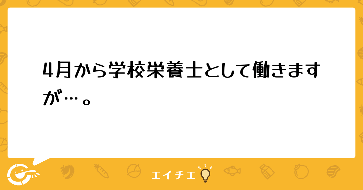 4月から、学校栄養士として働くことになりました。3月に短大を卒業するので、正直なところ、詳しい仕事内容も分かりませんし、本当に自分に出来るのか不安です。